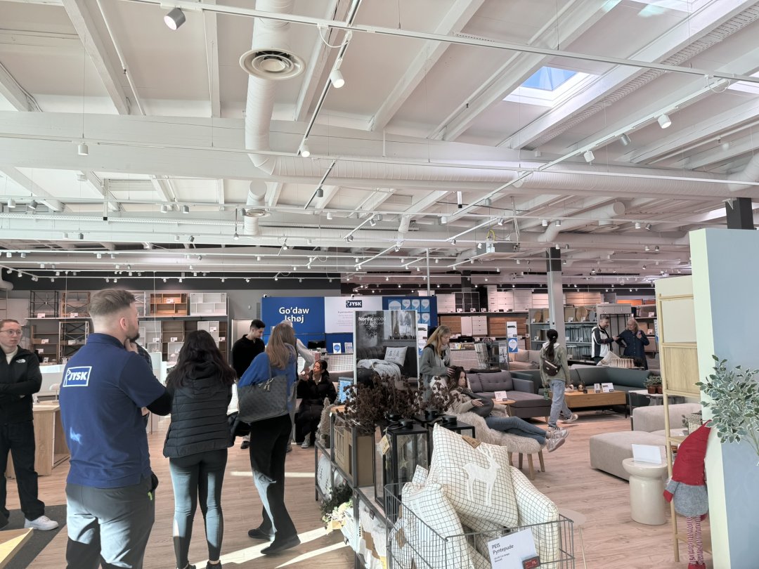 Hos Jysk blev eleverne mødt af Douglas, der selv startede som elev og nu er leder i virksomheden. Han fortalte om Jysks fokus på både faglig og personlig udvikling gennem deres omfattende elevprogrammer. “80% af vores elever bliver fastansat efter endt uddannelse,” forklarede han. Jysk lægger stor vægt på, at eleverne ikke blot lærer at sælge, men også at rådgive kunderne, arbejde med lagerstyring og tage ansvar i ledelsen. Det stærke fællesskab og sociale aktiviteter mellem medarbejderne er også med til at gøre det til en særlig oplevelse at arbejde hos Jysk.