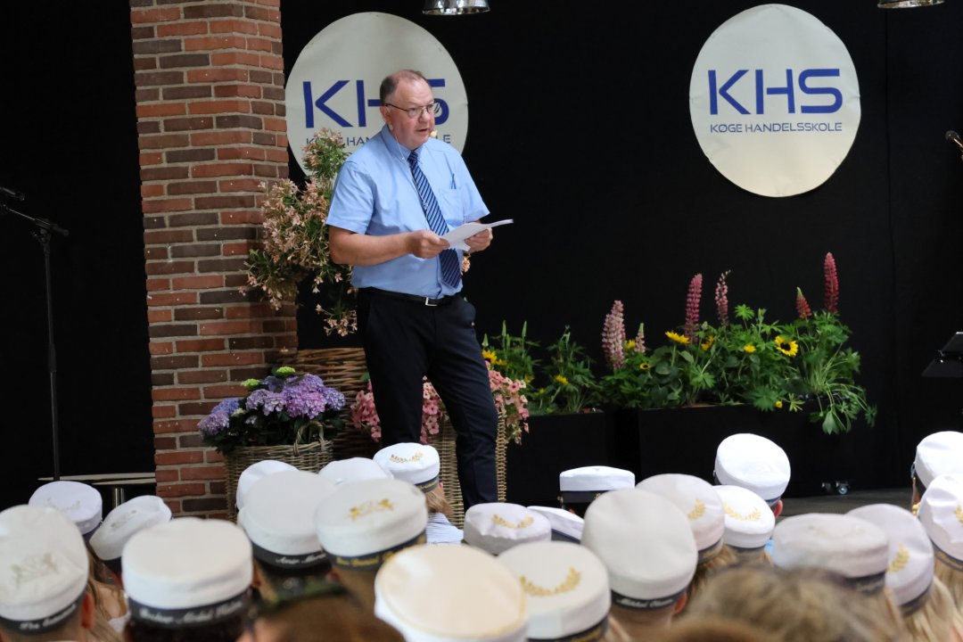 Skolens direktør Stig Johansen gav de nybagte handelselever et par ord med på deres vej videre: