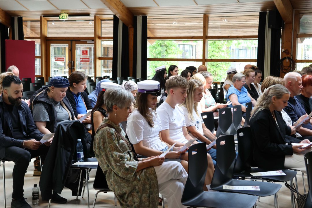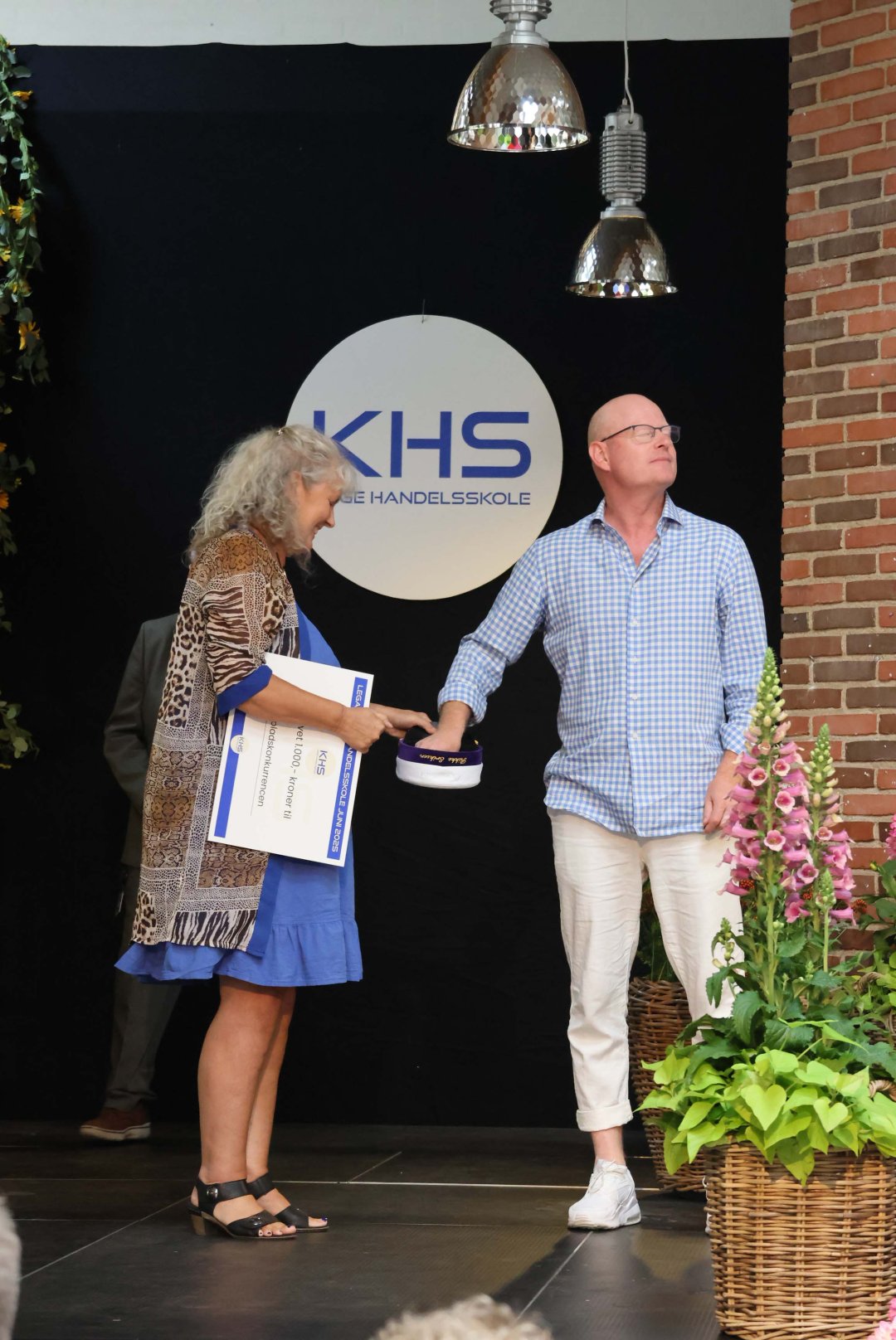 Fra scenen blev eksamensbeviserne overrakt, og efter taler og musikindslag kulminerede dagen i årets lærepladskonkurrence. Legatet på 1.000 kr. fra KHS gik til Sandra Maria Nicolaisen Frost, der har sikret sig læreplads hos Imerco.