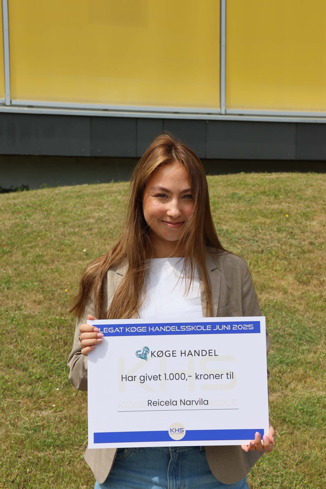 Køge Handel uddelte desuden et legat på 1.000 kr. til Reicela Narvila, som har fået læreplads hos ILVA. Udvalgt af lærerne blev hun fremhævet som “skrap, et samlingspunkt og med et stort hjerte,” lød det fra klassens kontaktlærer. Tusind tak til Køge Handel for at støtte op om vores elever.
