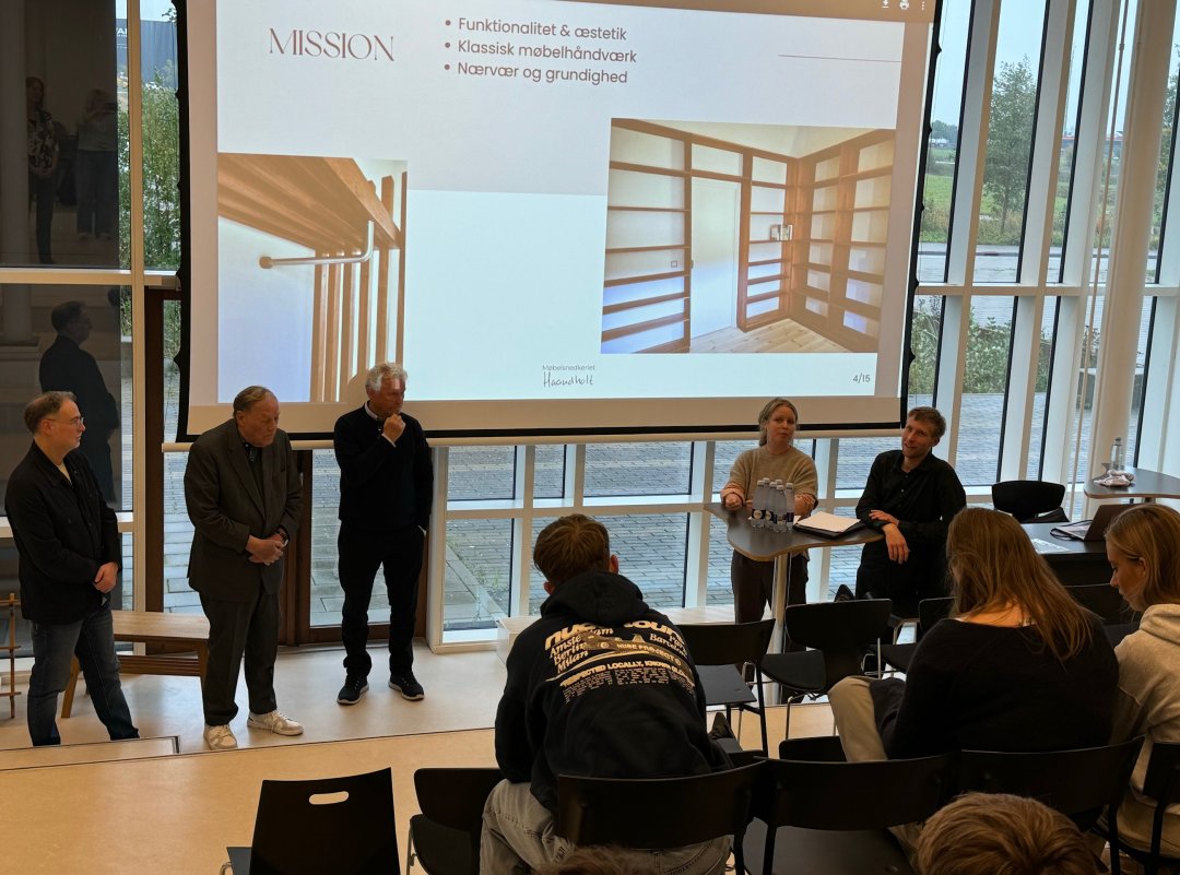 Kick-off-arrangementet bød på besøg fra de unge iværksættere Maja og Niels fra virksomheden Haandholt, som delte deres erfaringer med at starte egen virksomhed og balancere arbejdsliv med opstartens udfordringer. Der var helt stille i auditoriet, da iværksætterparret fortalte om deres rejse fra spæd idé til succesfuld virksomhed, der restaurerer gamle møbler – med støtte fra Sparringspartnerne. Maja og Niels understregede, at iværksætteri ofte er en lang rejse, hvor det er vigtigt at tage små skridt og bygge fundamentet grundigt op.