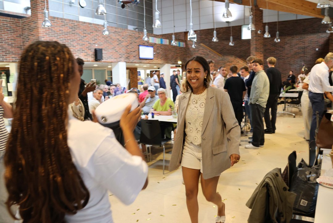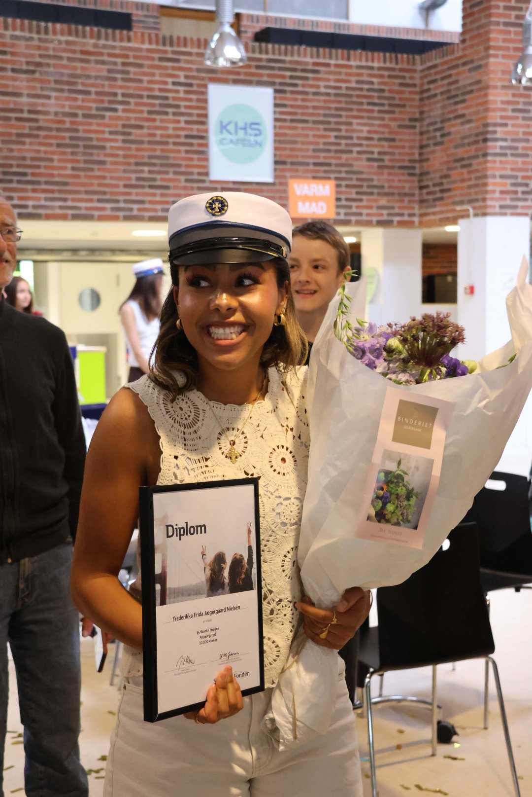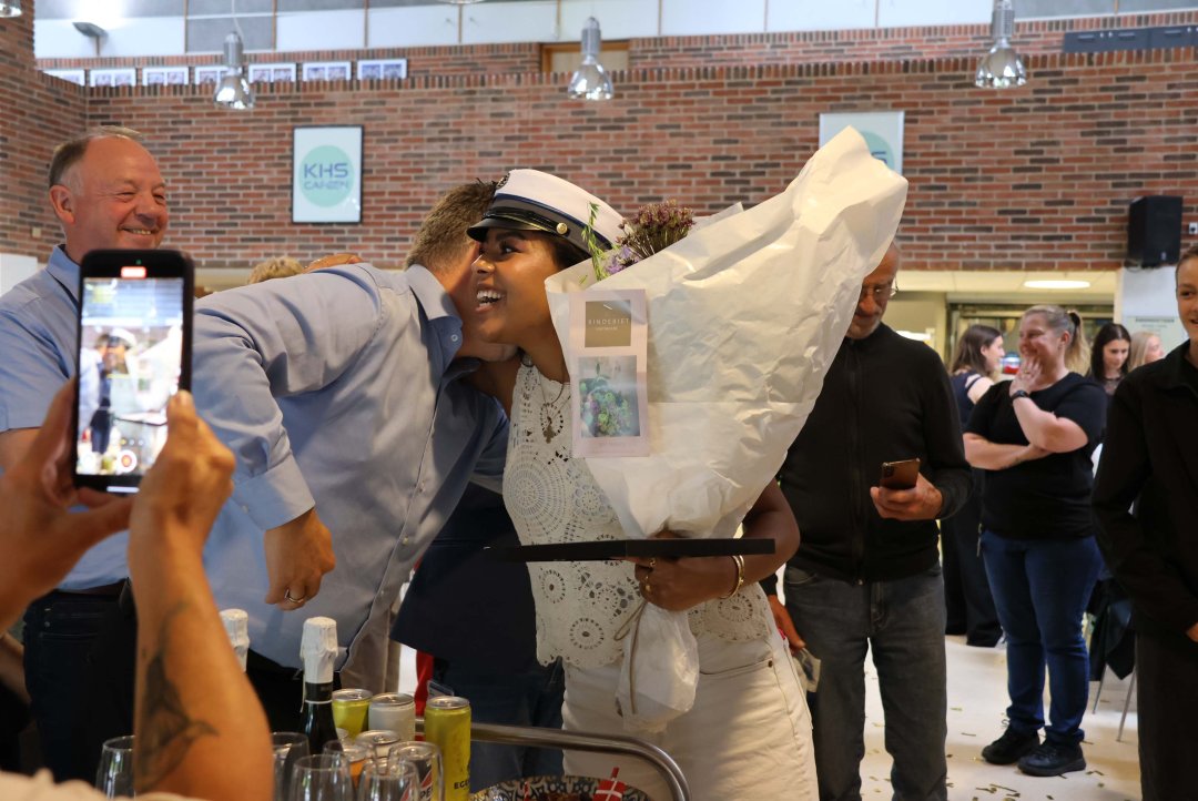 “Brug pengene unyttigt. Gør noget godt for dig selv – og nyd det,” lød ordene fra Per Kongstad Slot, da han overrakte diplom og kuffert til en overrasket Frederikka.