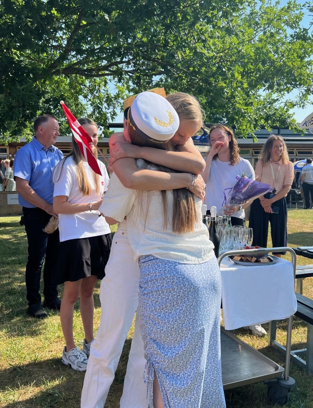 ”Jeg glæder mig helt vildt til at dykke ned i speditør-verdenen, der omhandler søfragt og luftfragt samt nødtransport i samarbejde med Unicef”, fortæller Mathilde, der blev fejret på behørig vis i gårdhaven på Køge Handelsskole.