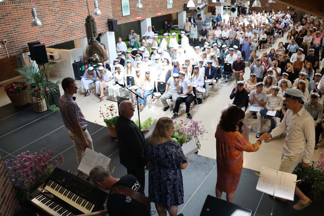 Det blev et både festligt og højtideligt farvel til vores studenter fra HHX. Salen summede af festlig stemning og godt humør, da nybagte studenter mødte op til fejring sammen med deres familier den 29. juni 2024. Det var en dag fyldt med højtidelige taler, musik fra skolens husband, overrækkelse af eksamensbeviser, sang og smil over hele linjen.